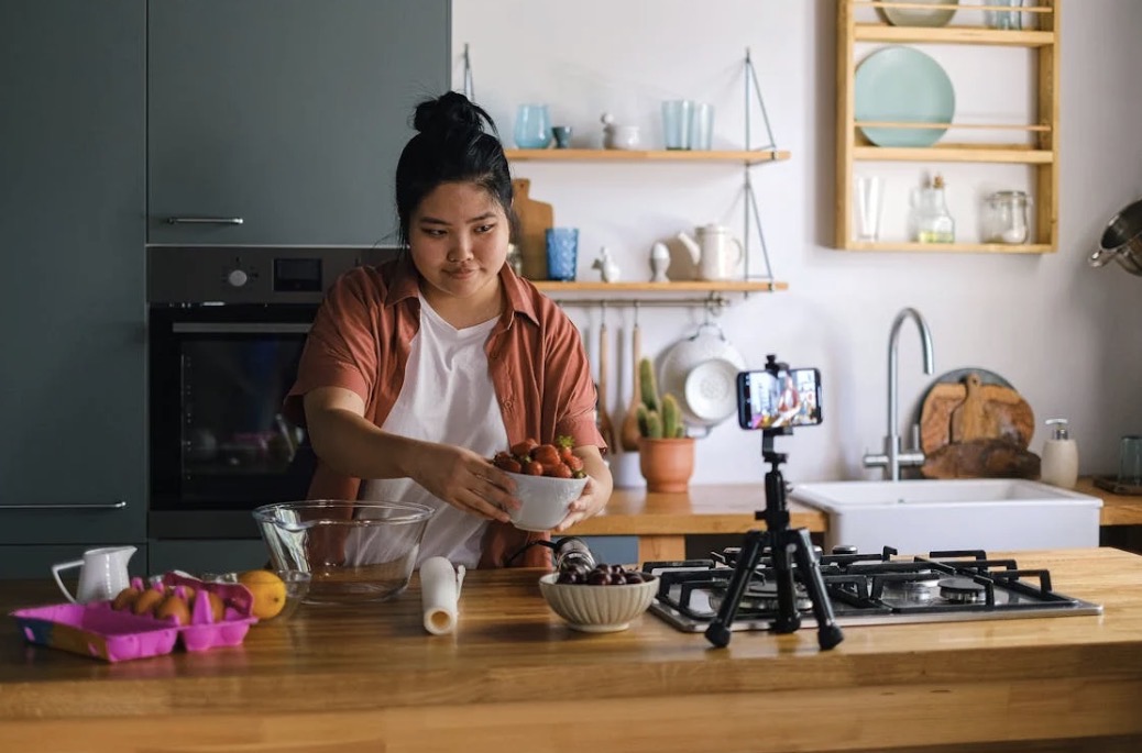 Photo: Accessed from Pexels. https://www.pexels.com/photo/woman-recording-herself-while-cooking-12673813/